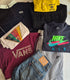 Include brand come The North Face, New Balance, Puma, Tommy Hilfiger, Carhartt, Jordan, Dickies, Lee, Wrangler, Levi's, Puma, Champion, Nike, Adidas, NFL, Columbia, Dsquared, Reebok, Fila, Umbro, NBA, Everlast, Under Armour, Vans, Ellesse, Timberland, North Sails, Rifle, Ralph Lauren, Jekerson, Lee, Elisabetta Franchi, Marella, Wrangler, Levi's, Dolce e Gabbana, Moncler, Refrigiwear, Timberland, Napapijri, Max Mara, Peuterey, Calvin Klein, Boss, Guess, Liu Jo, Marlboro Classic, Moschino, Armani, Fred Perry ed altri marchi propriamente Vintage.